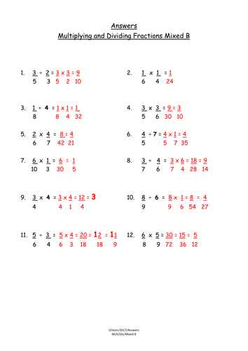 Multiplying And Dividing Fractions And Mixed Numbers Homework With Answers Teaching Resources