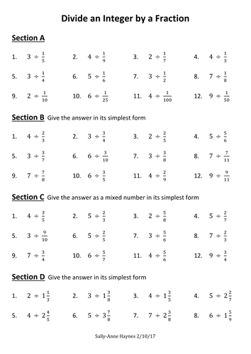 Divide An Integer By A Fraction Worksheet Teaching Resources