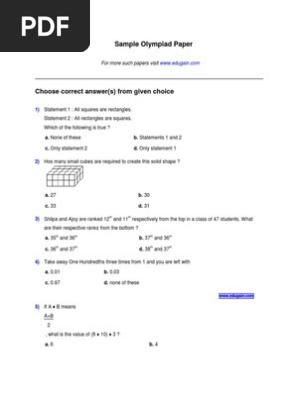 Math Olympiad Class 6 Sample Paper Teaching Mathematics